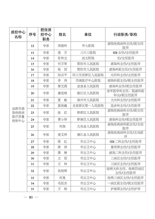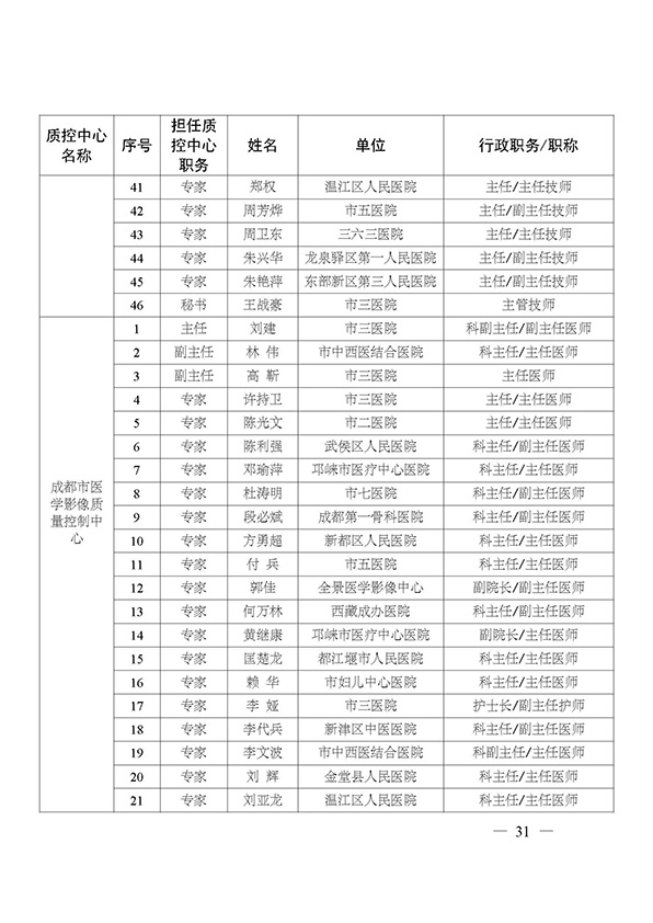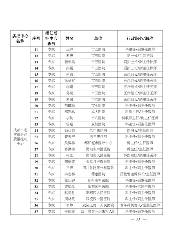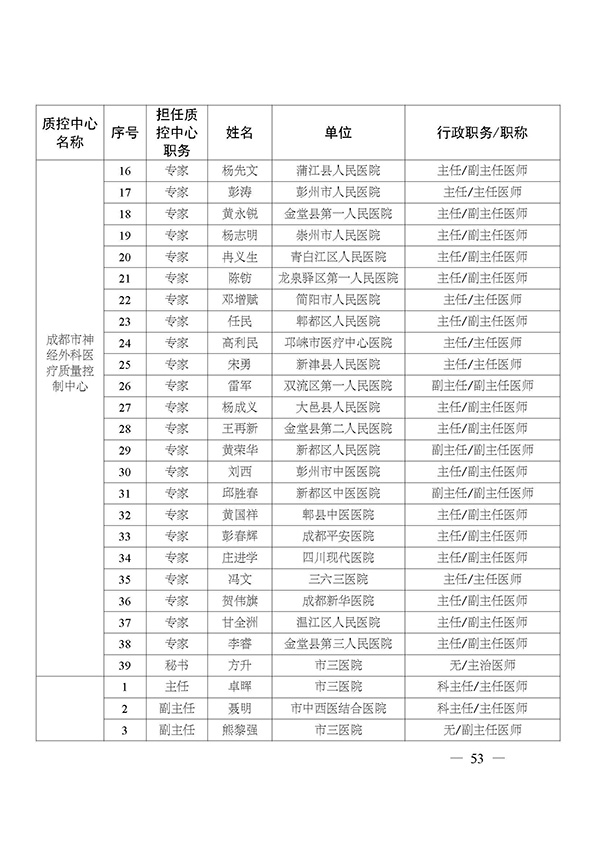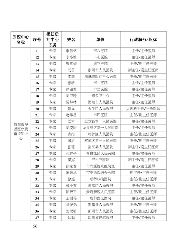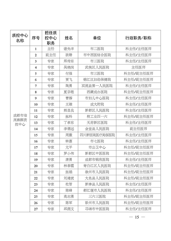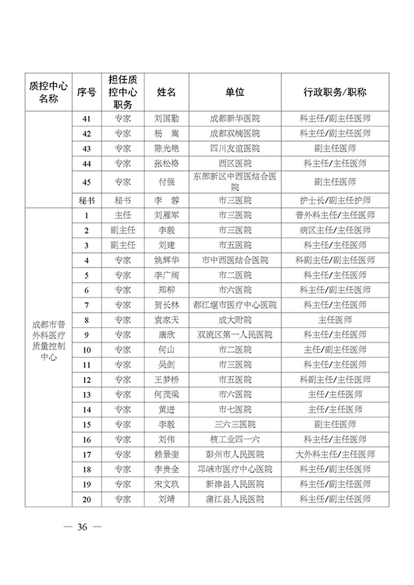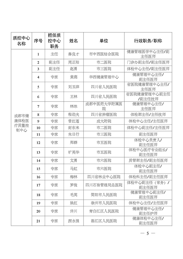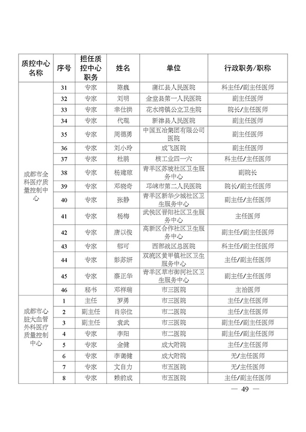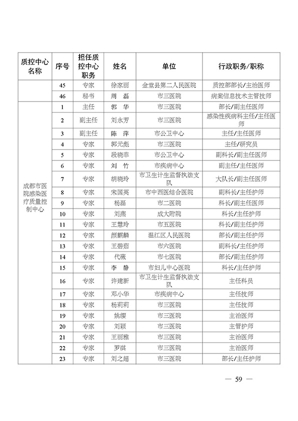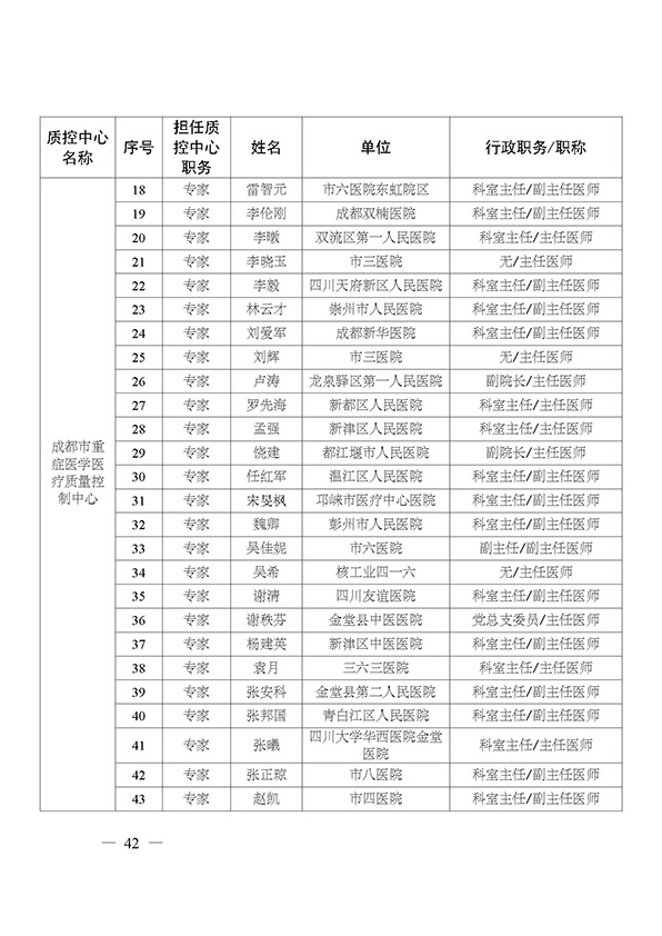 关于印发市级医疗质量控制中心专家名单的通知