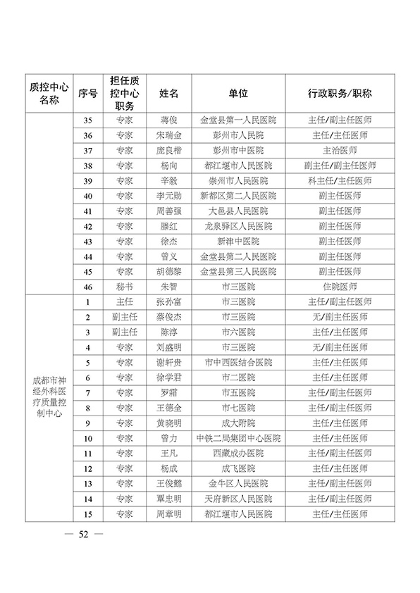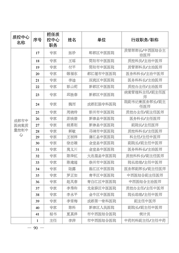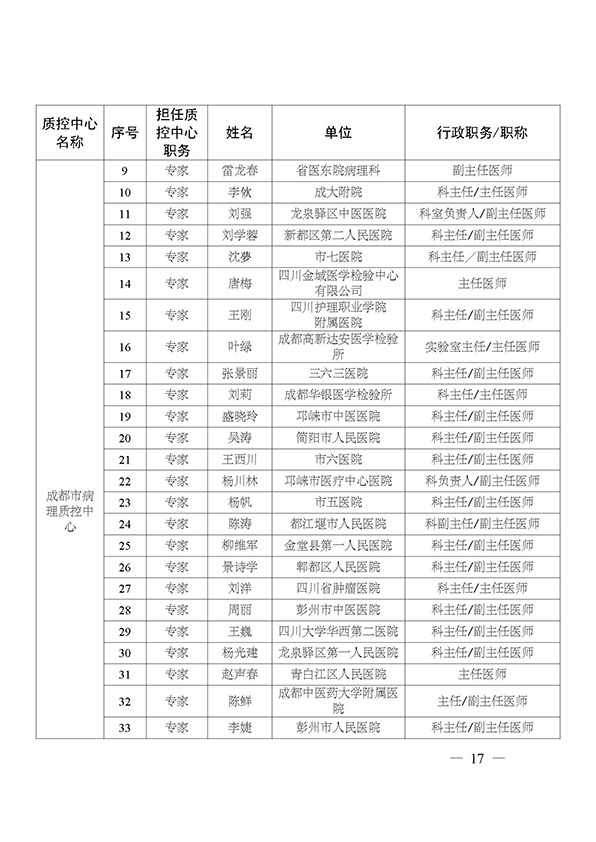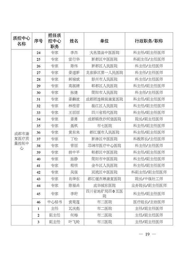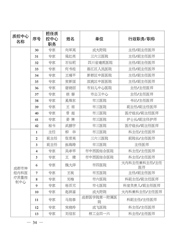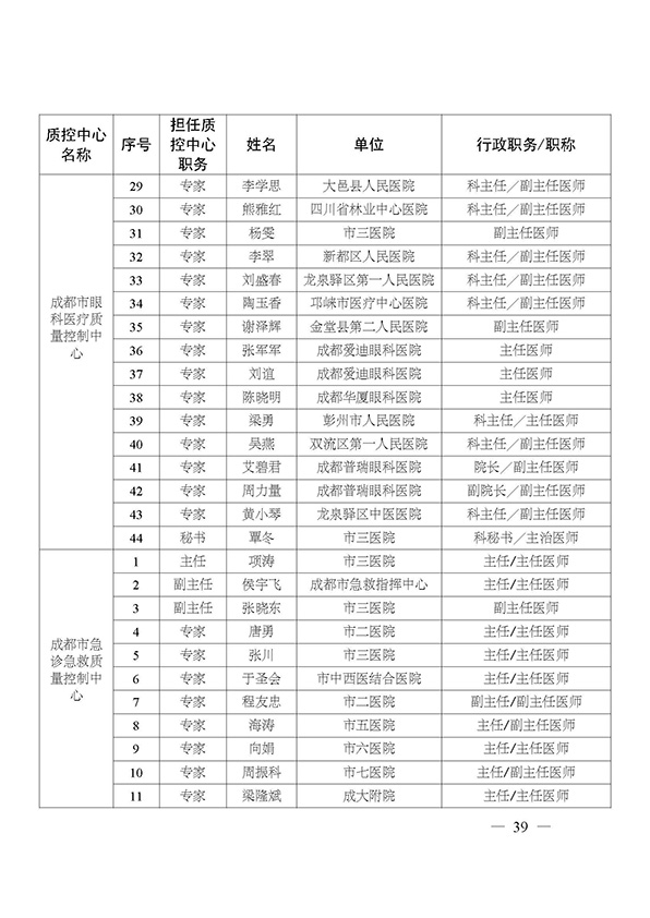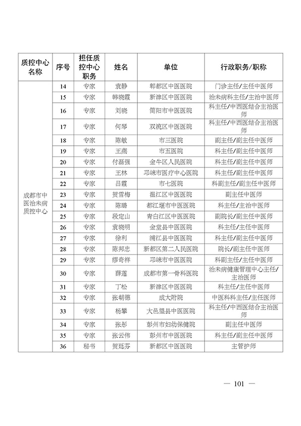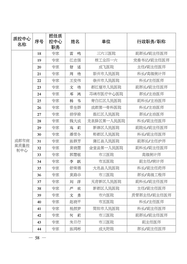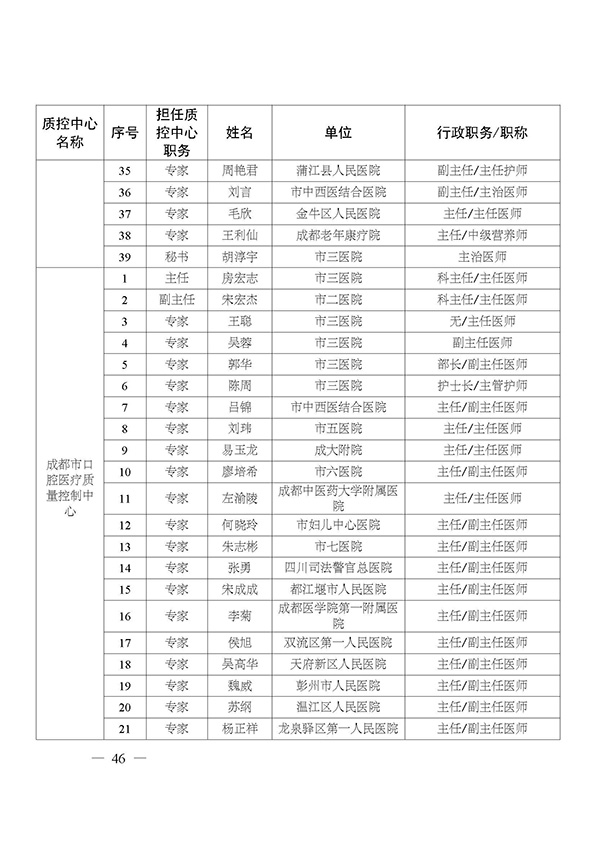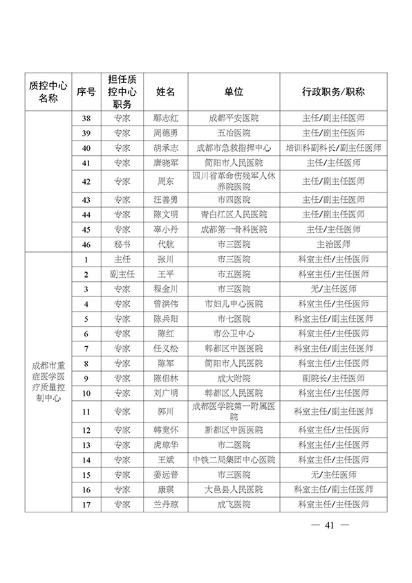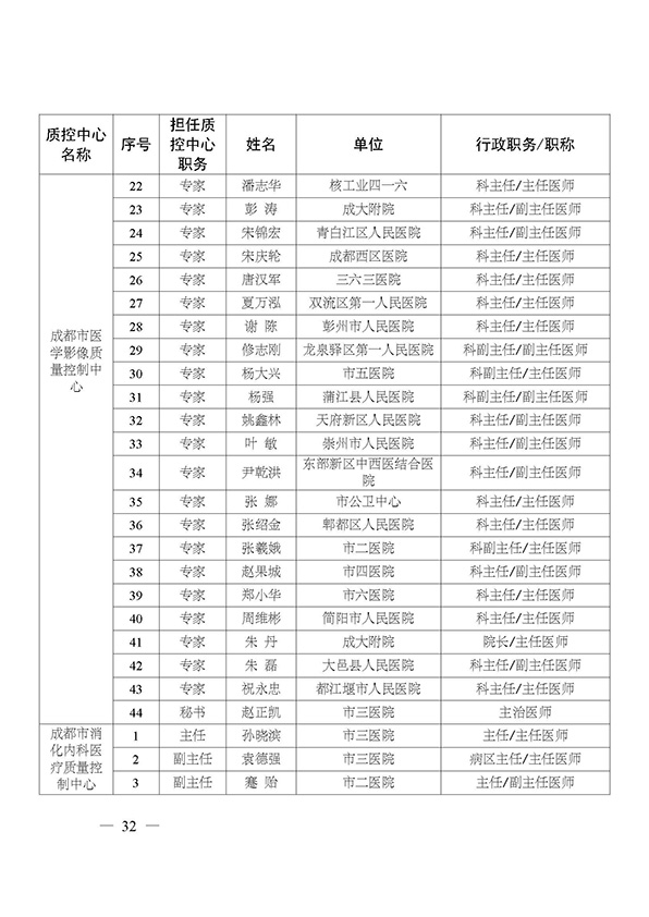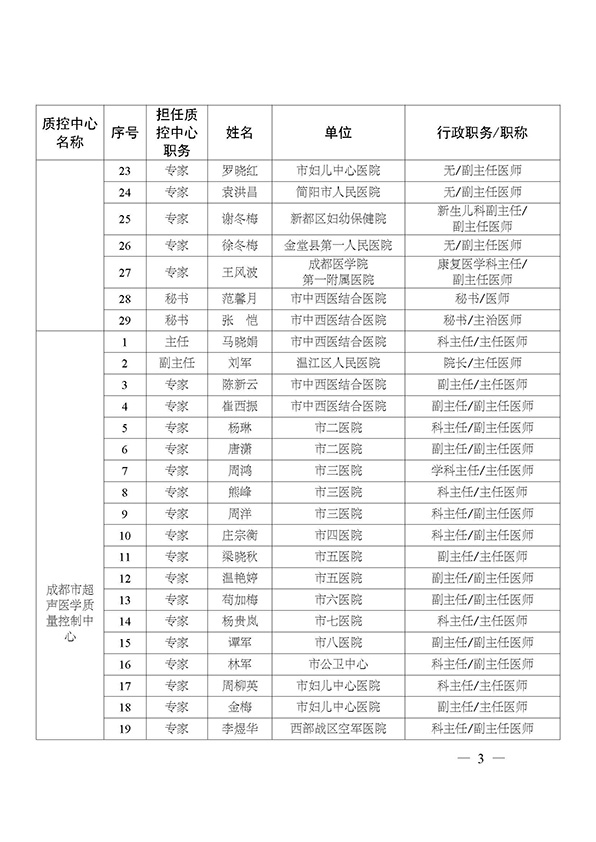 关于印发市级医疗质量控制中心专家名单的通知