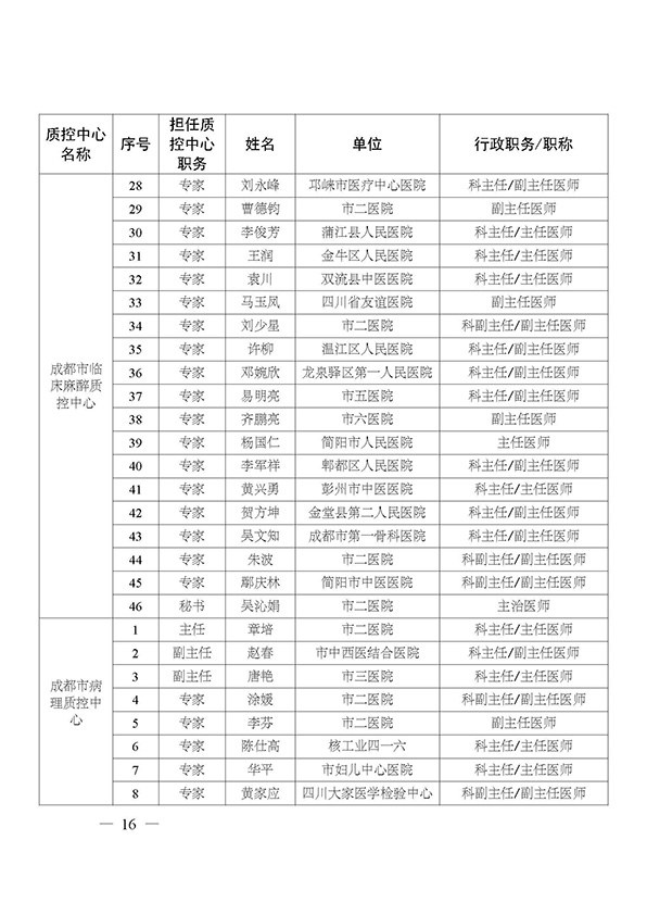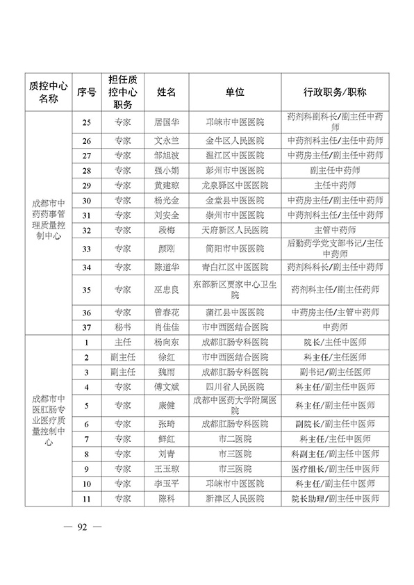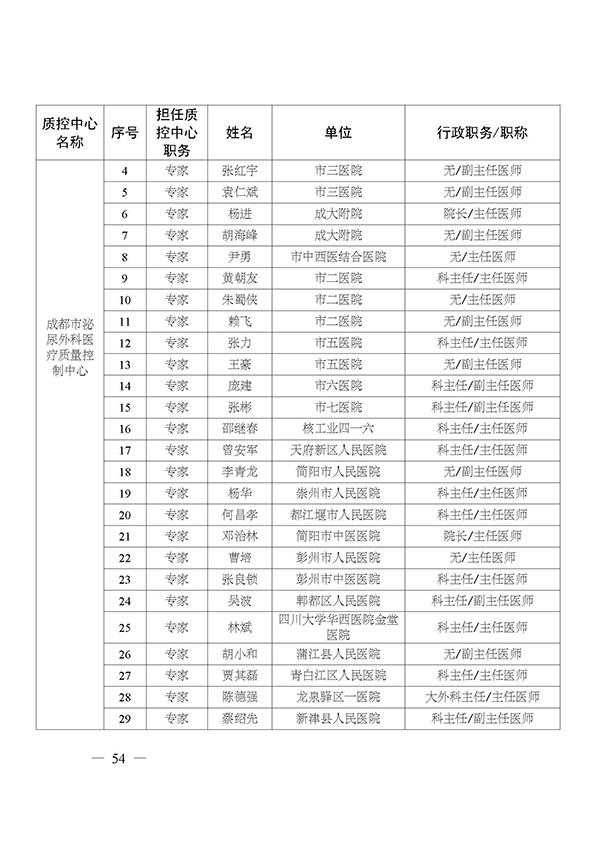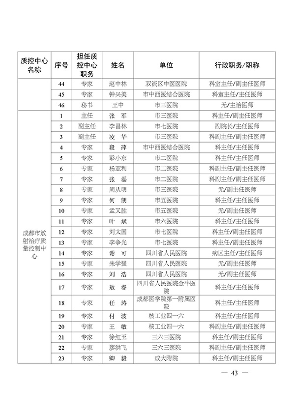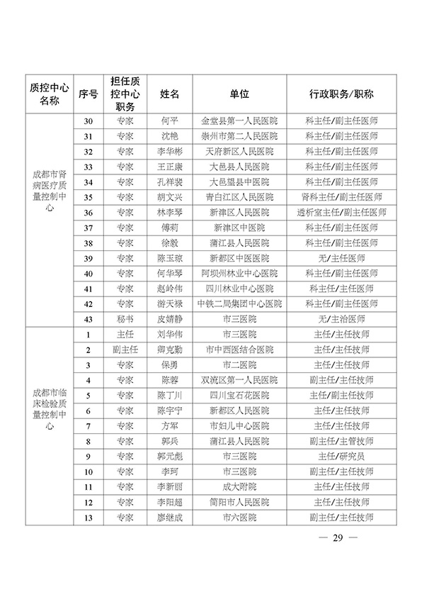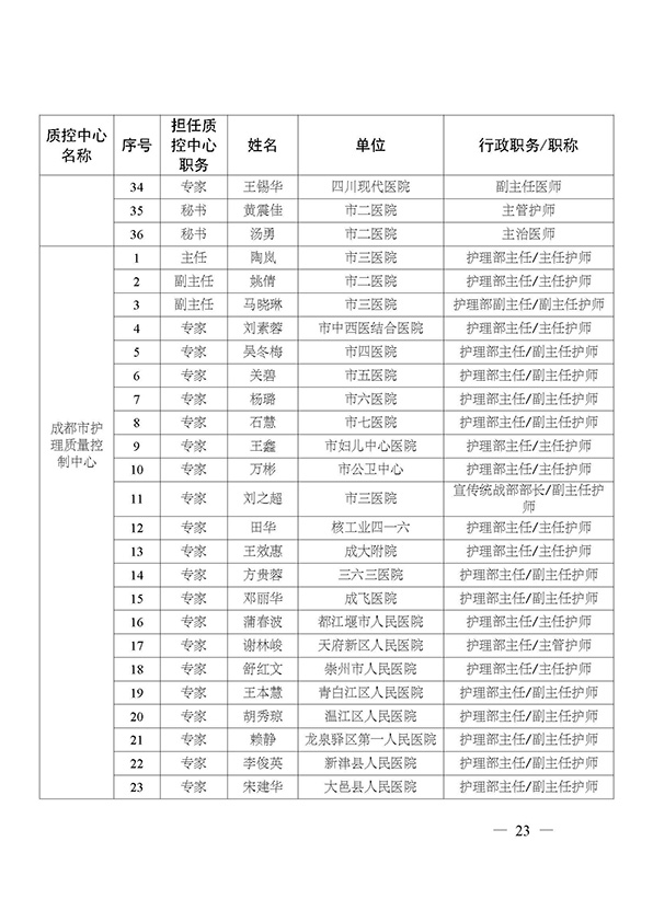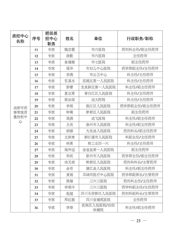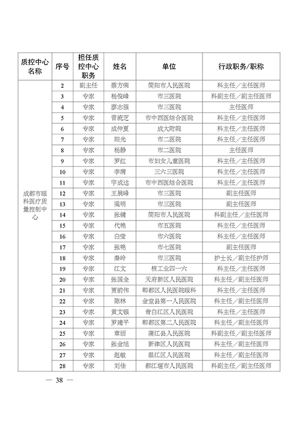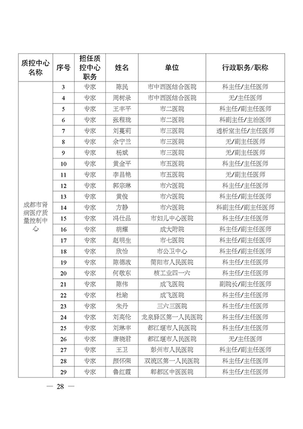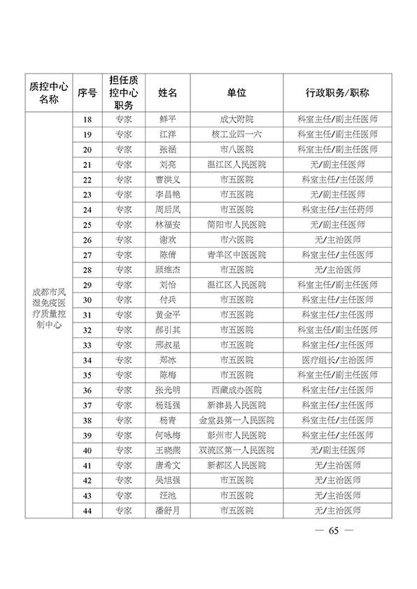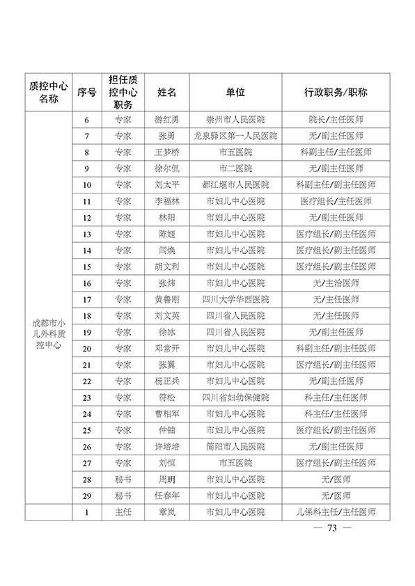 关于印发市级医疗质量控制中心专家名单的通知