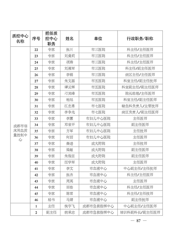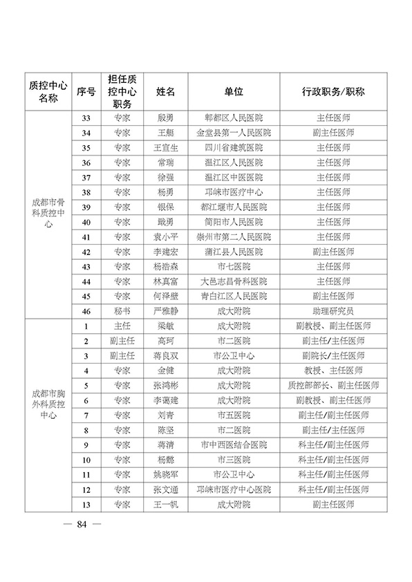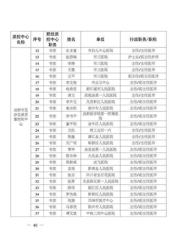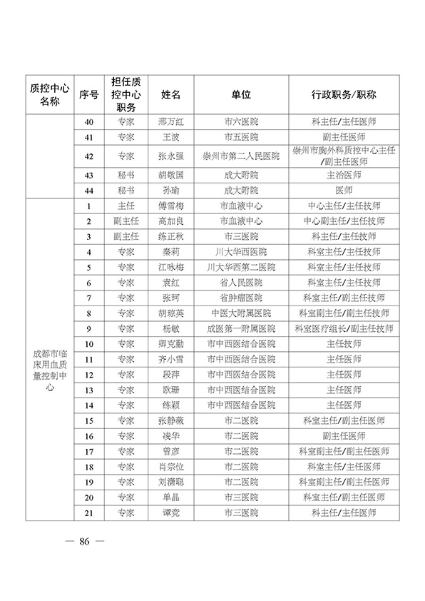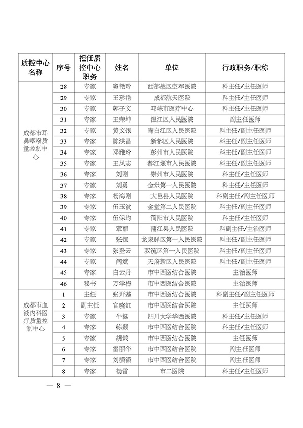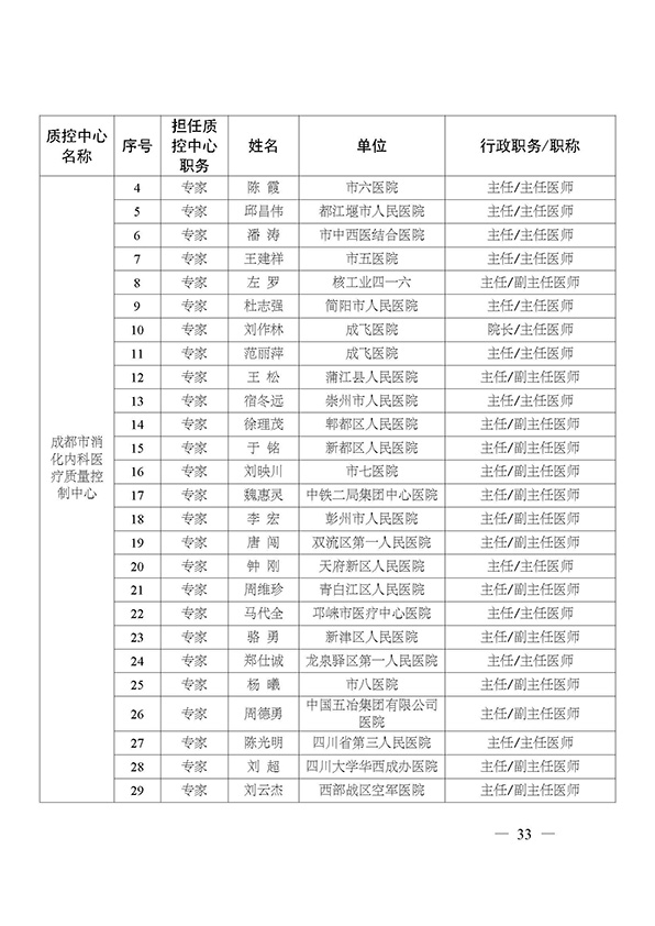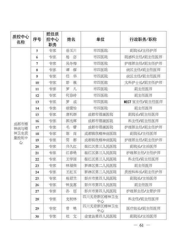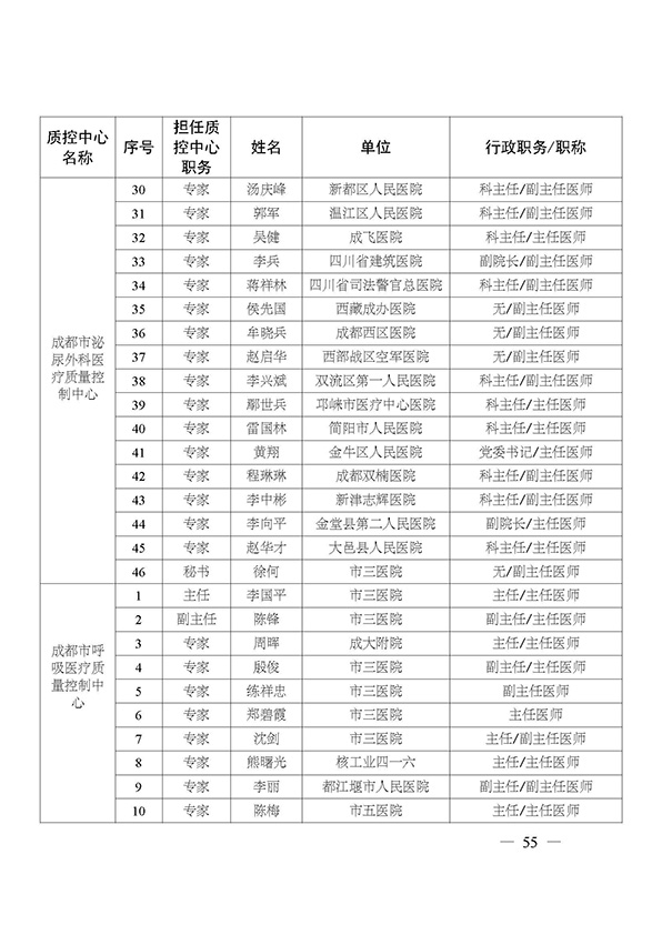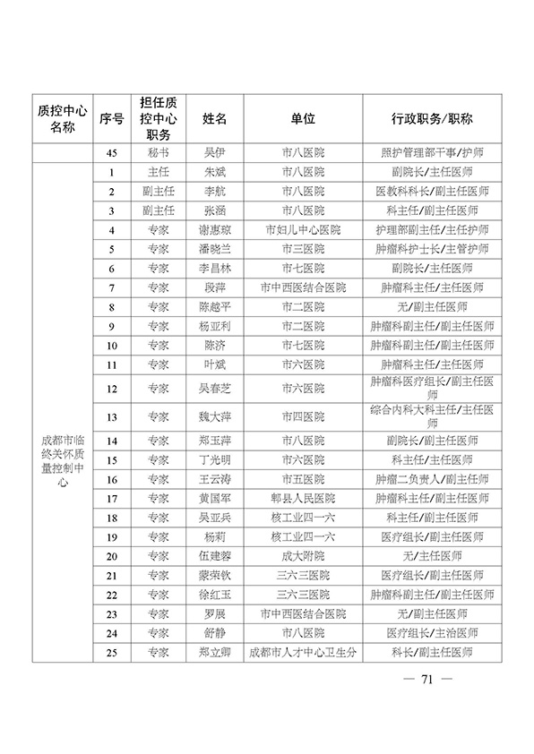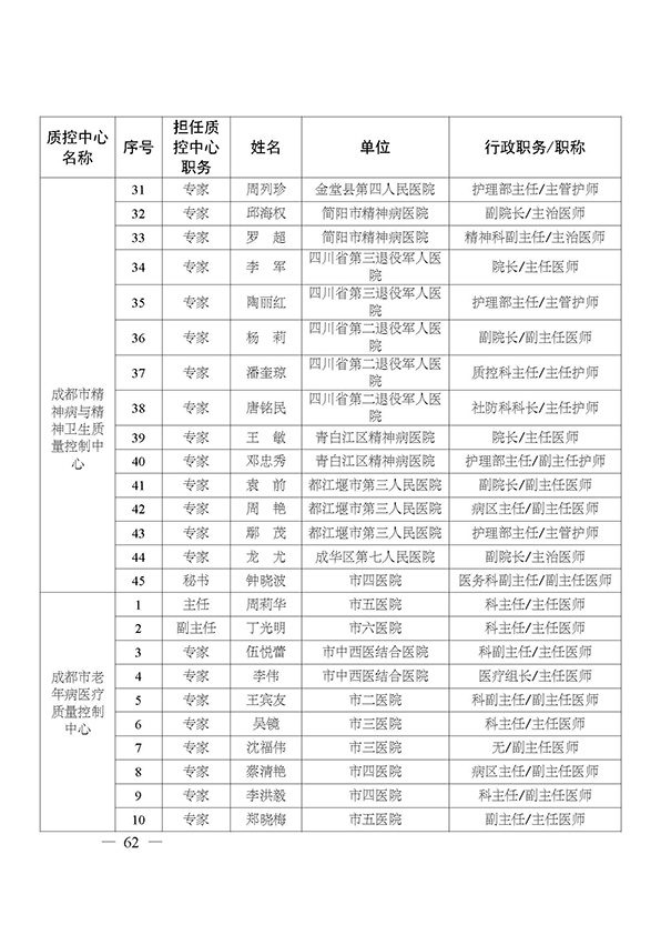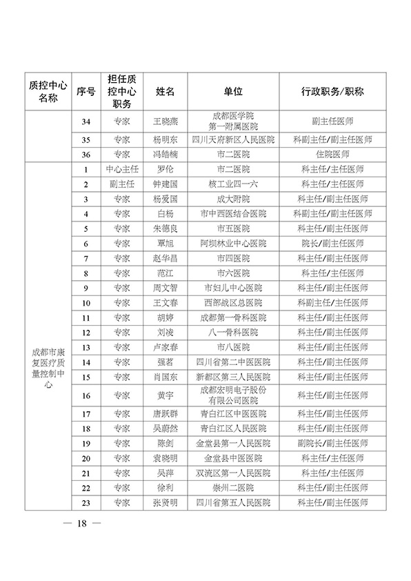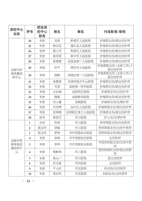 关于印发市级医疗质量控制中心专家名单的通知