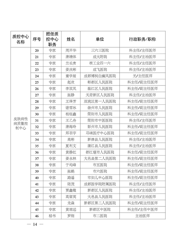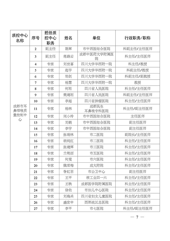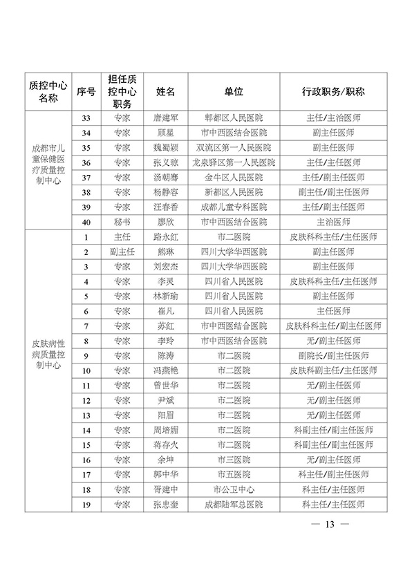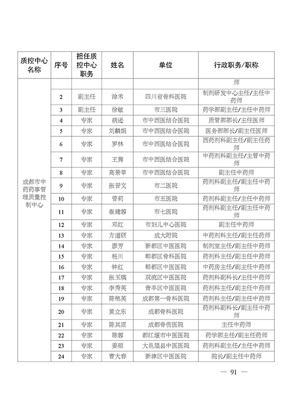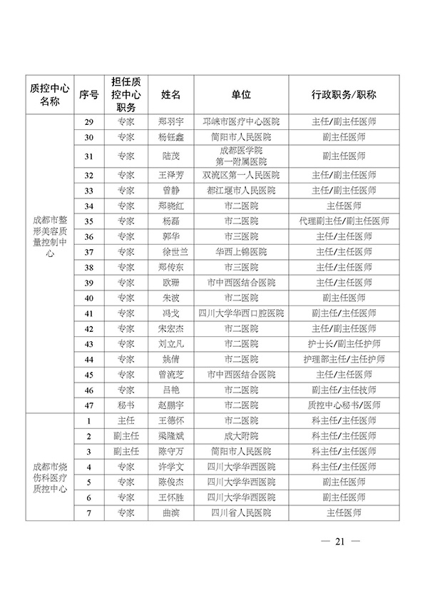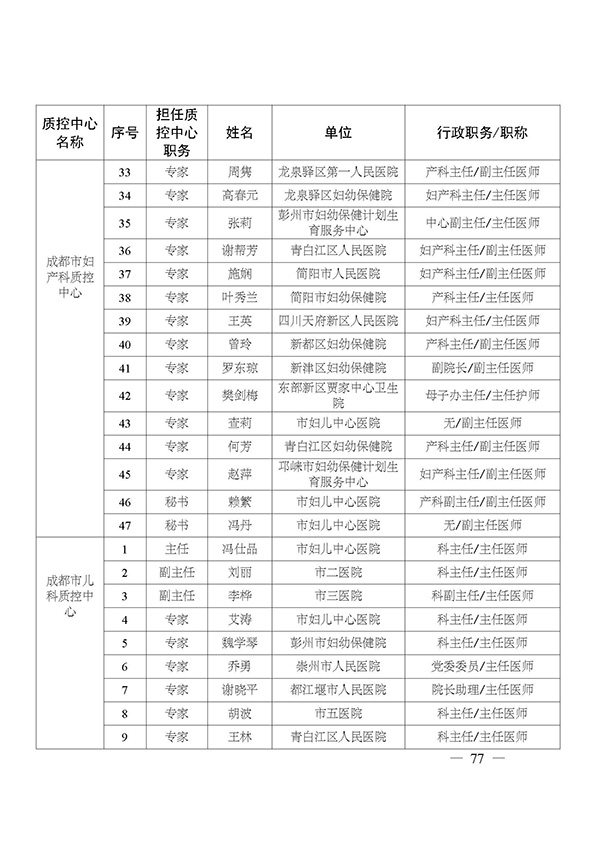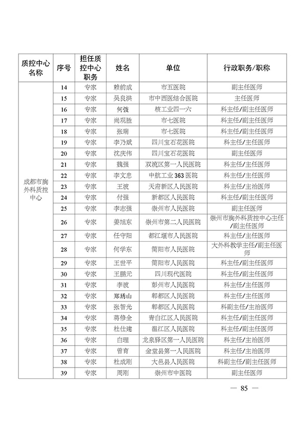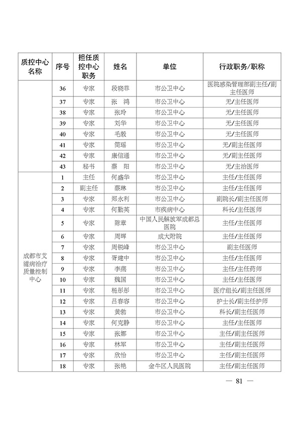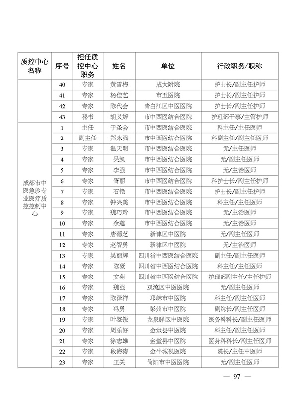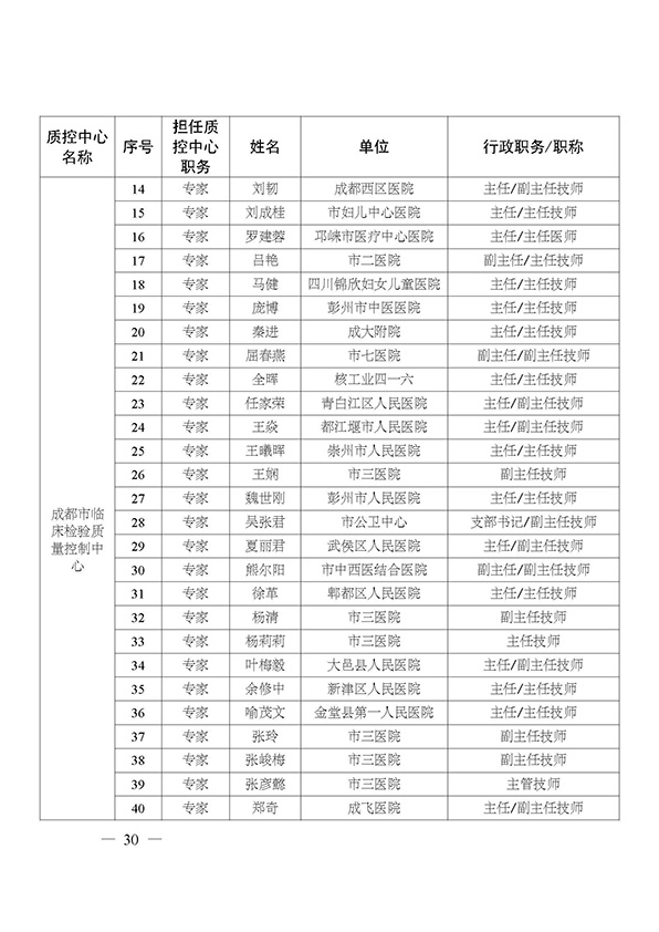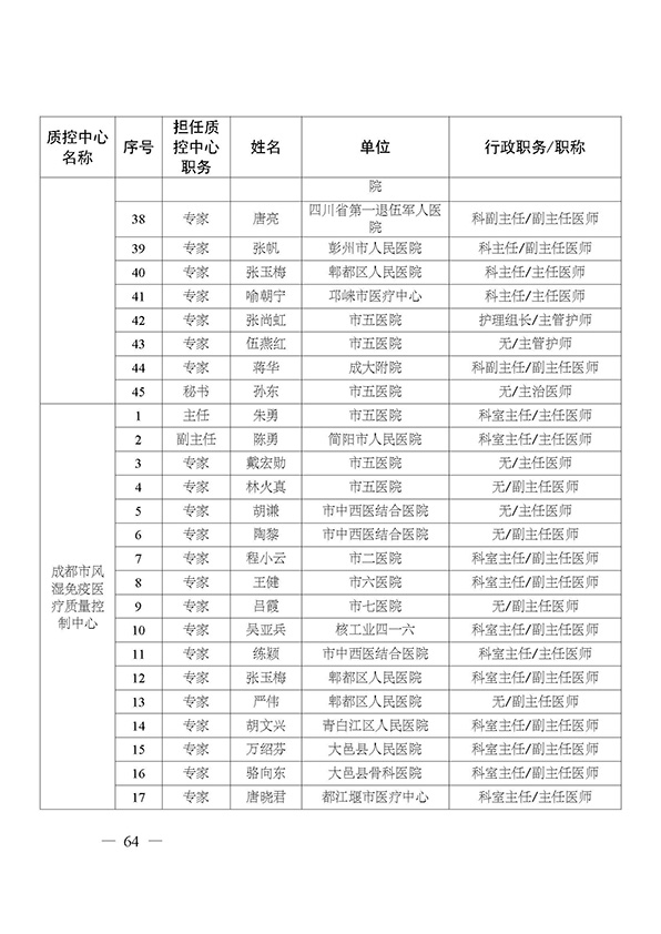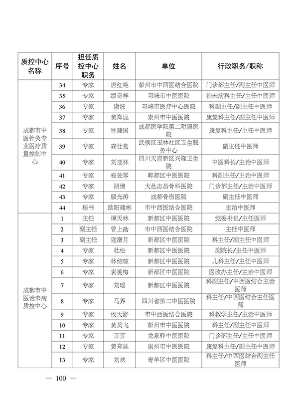 关于印发市级医疗质量控制中心专家名单的通知