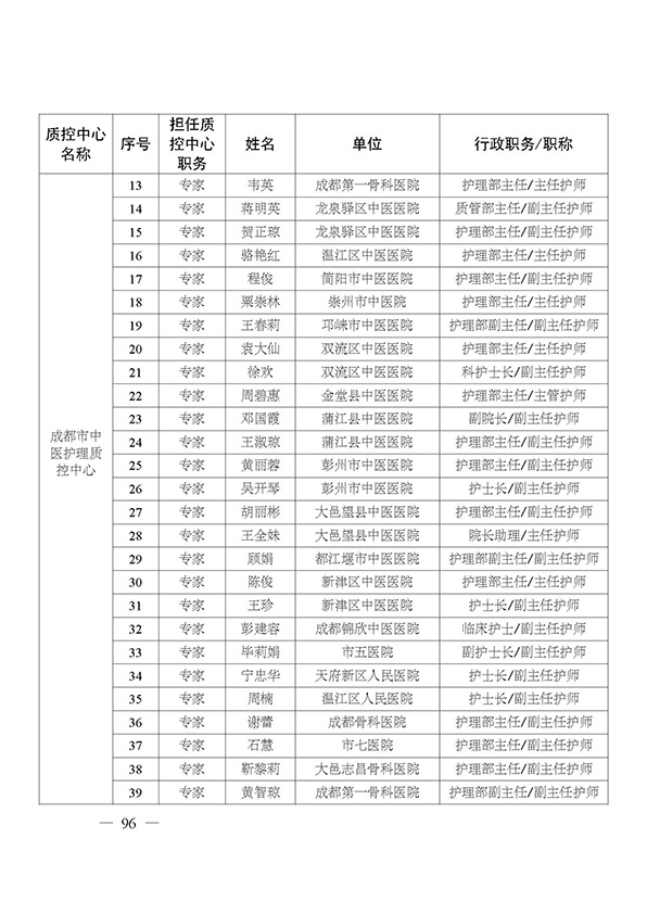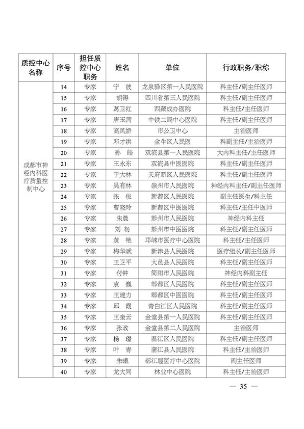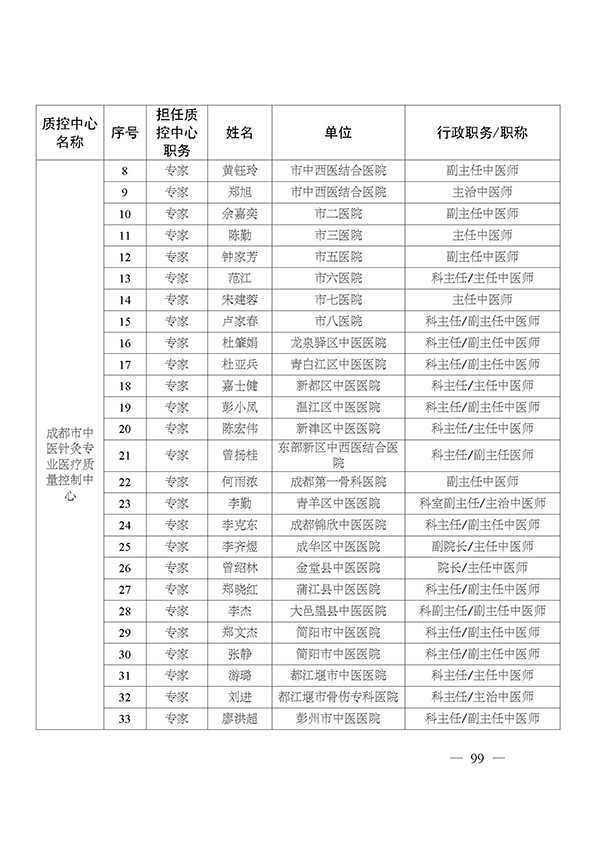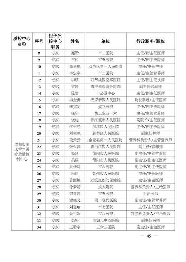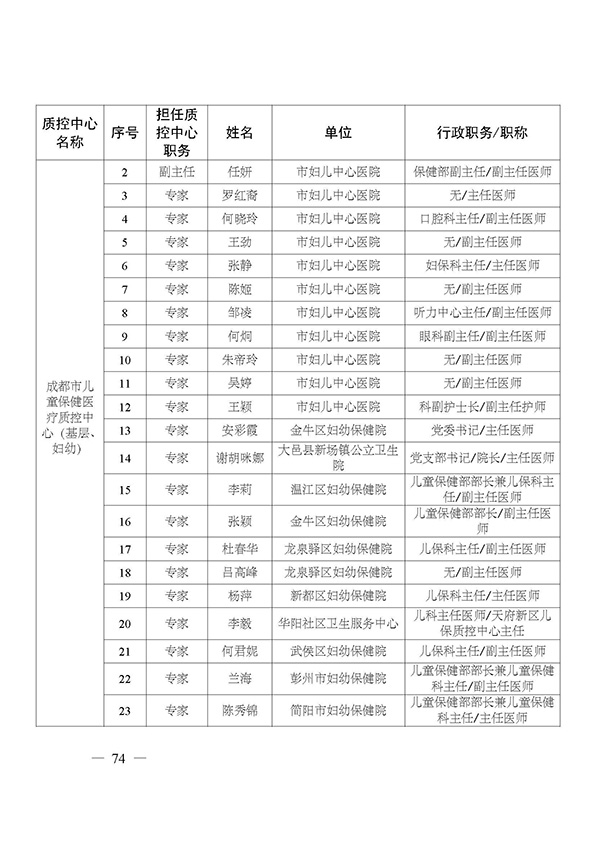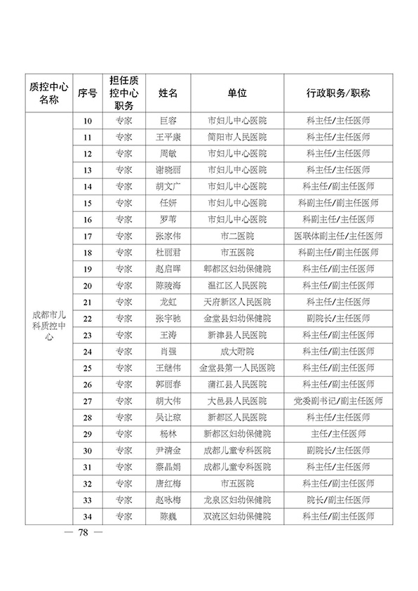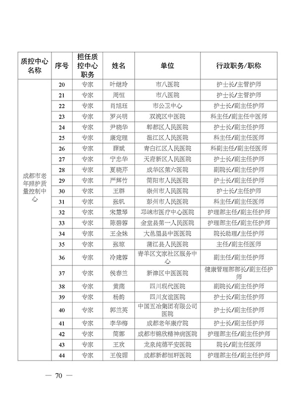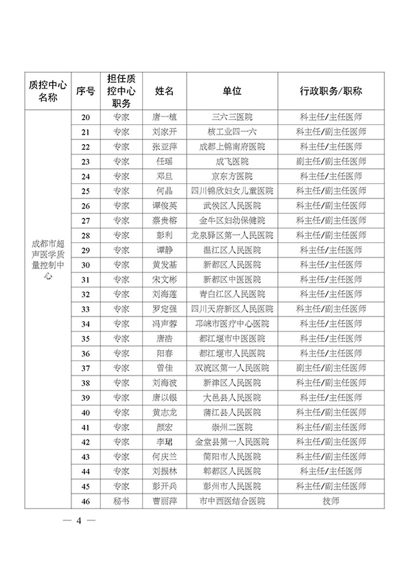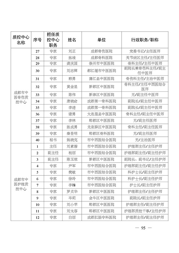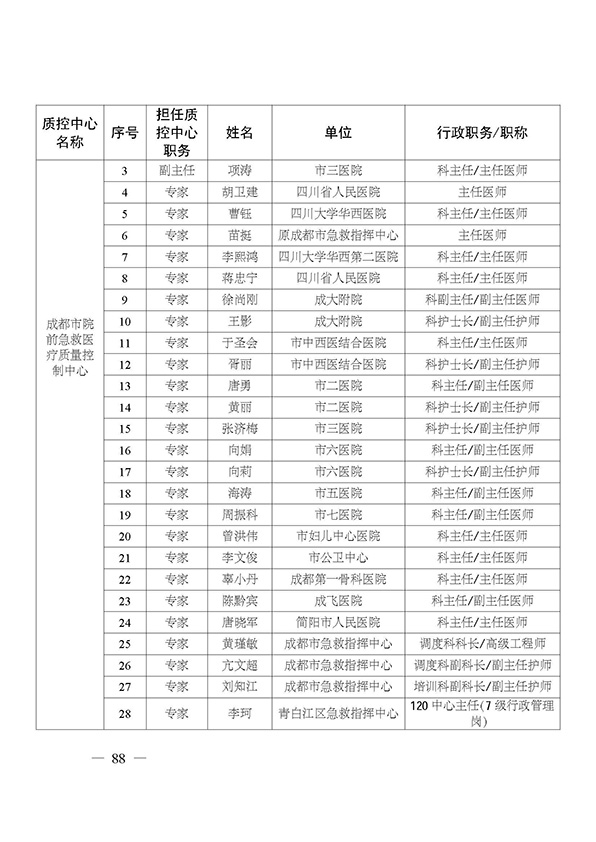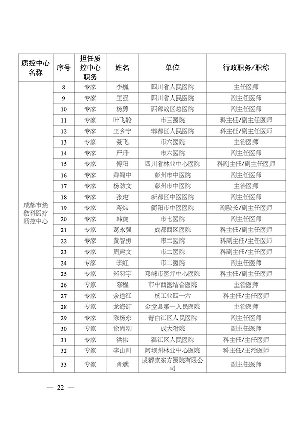 关于印发市级医疗质量控制中心专家名单的通知
