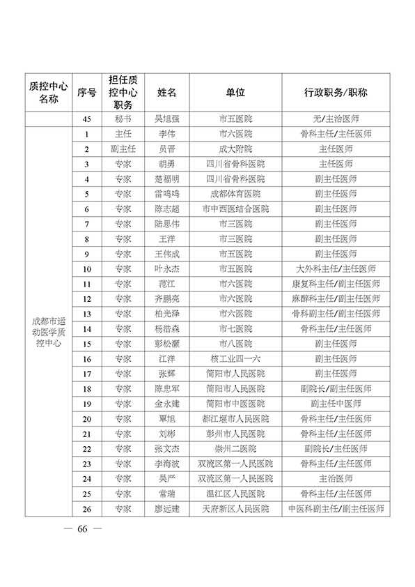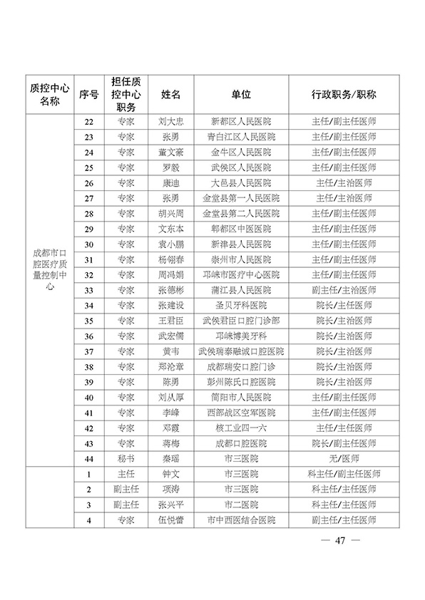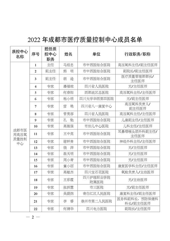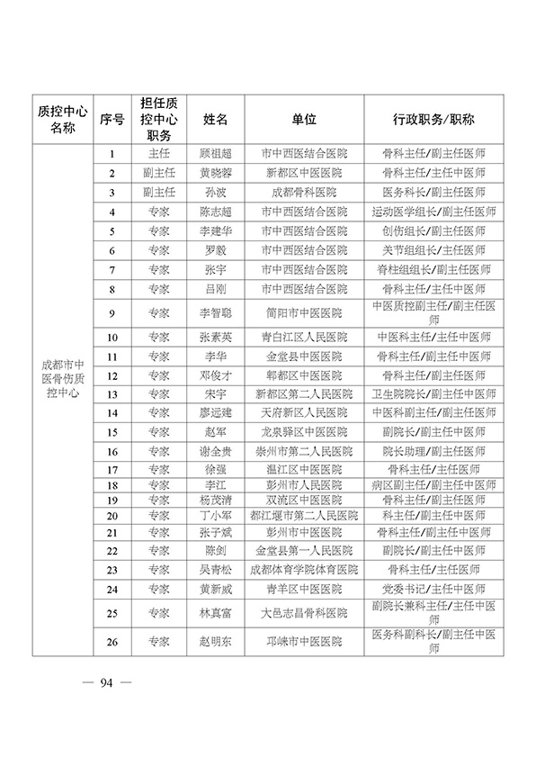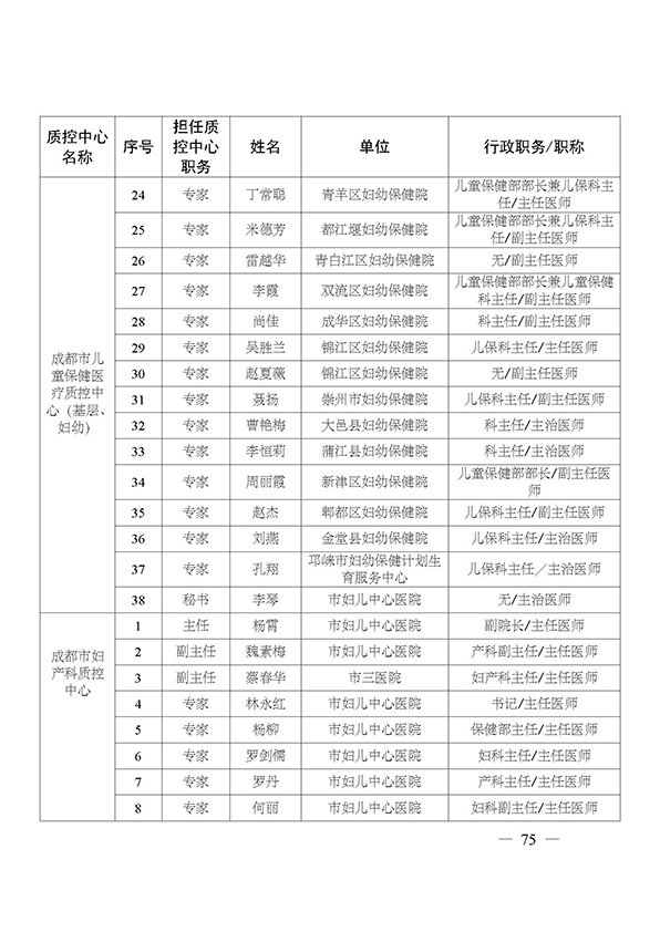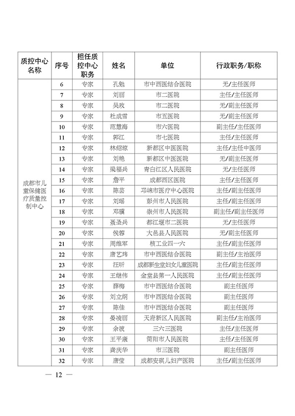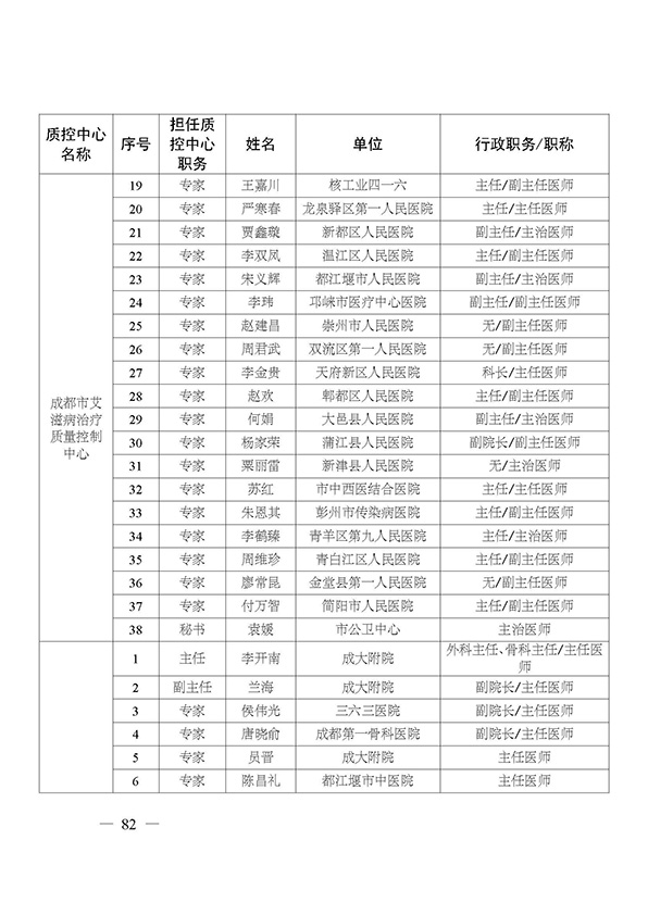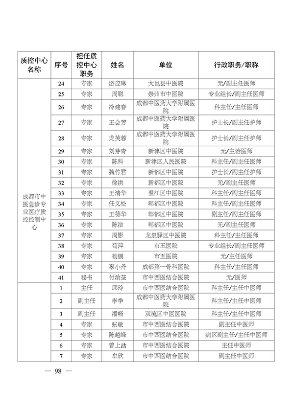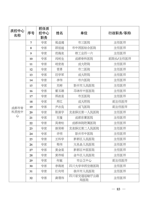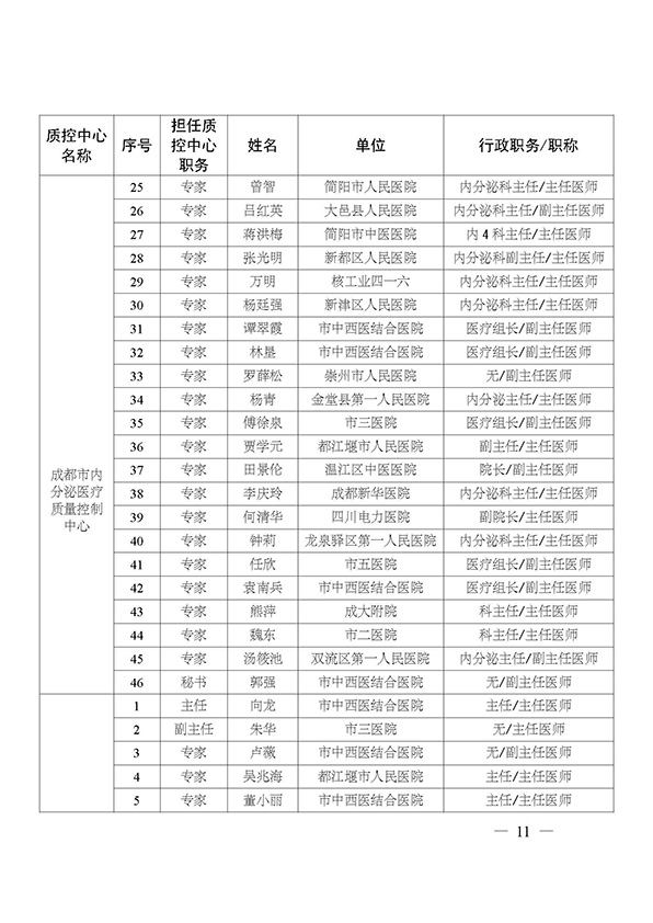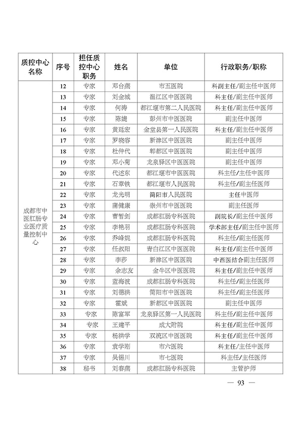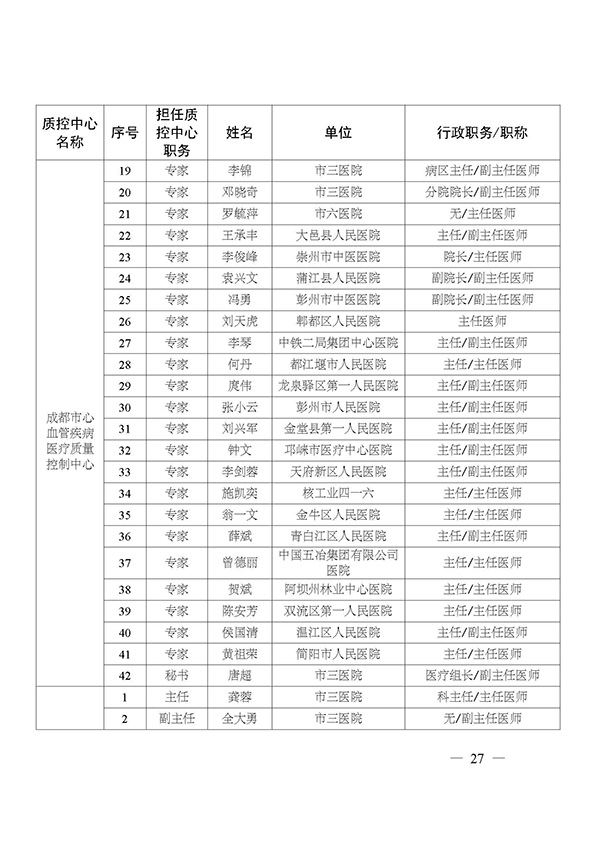 关于印发市级医疗质量控制中心专家名单的通知