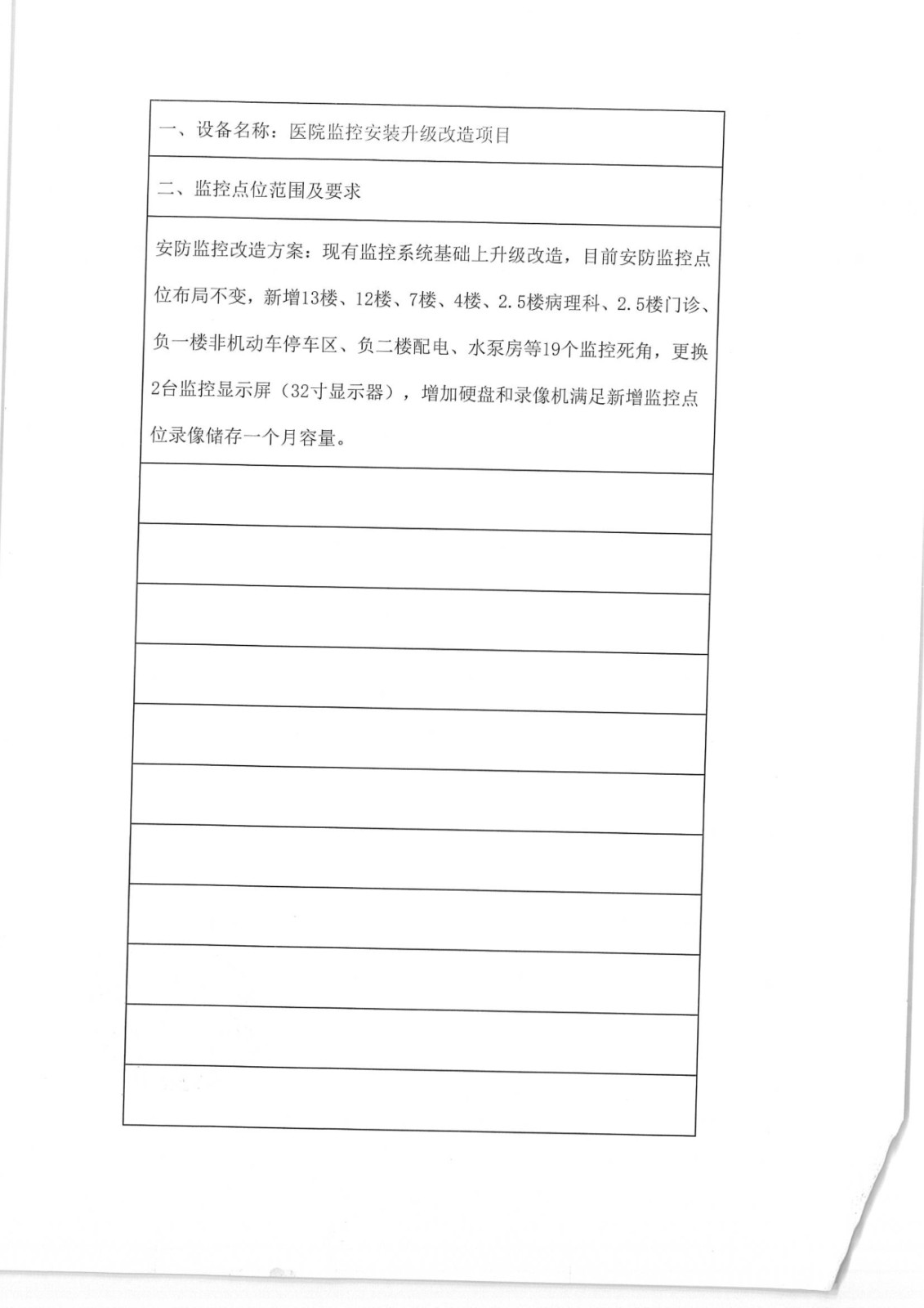 医院监控升级改造项目招标